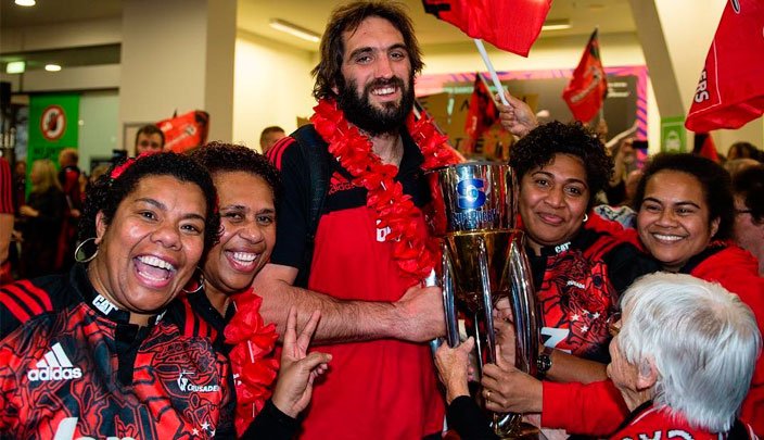 * recibidos como héroes en su llegada a Christchurch*