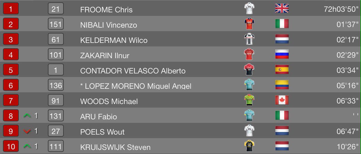 Pasan @chrisfroome y @albertocontador ...pierde tiempo Nibali...