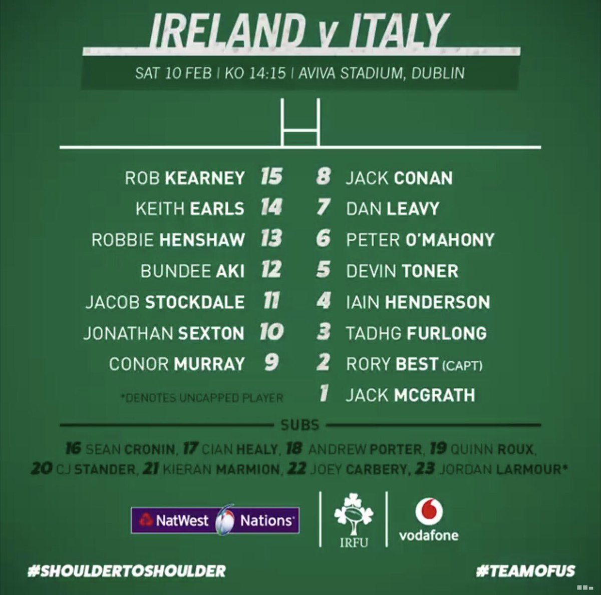 LEINSTER : 15 Rob Kearney, 14 Jordan Larmour, 13 Garry Ringrose, 12 Robbie Henshaw, 11 James Lowe, 10 Johnny Sexton (c), 9 Luke McGrath, 8 ...