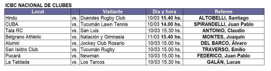 M 15* C Libre A. Perdió de local ante SIC..52 a 12 Prox..Visita a CASI. M 16* C Postergado A Gana de visita en Lomas..22 a 14 Prox...Local...