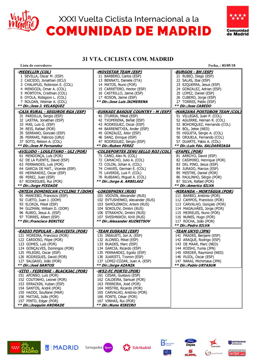 Listado definitivo de inscritos de la La Vuelta a Madrid 2018