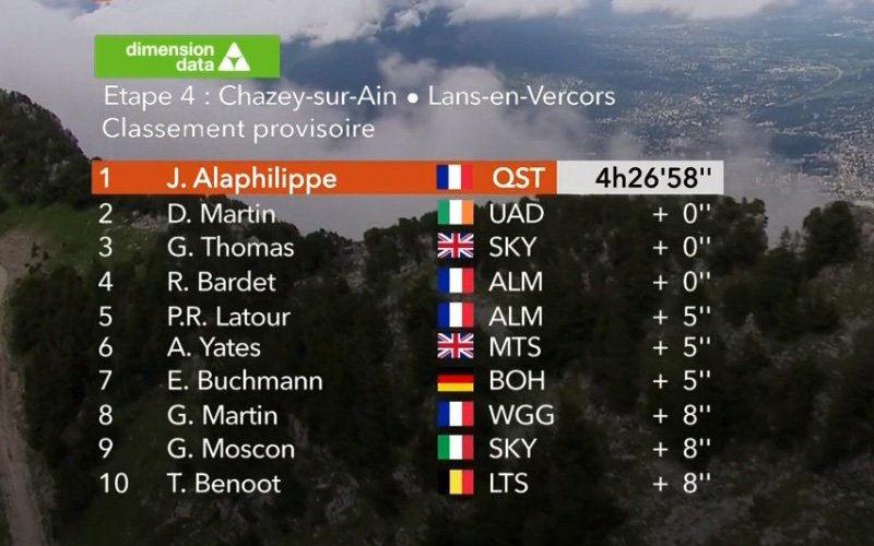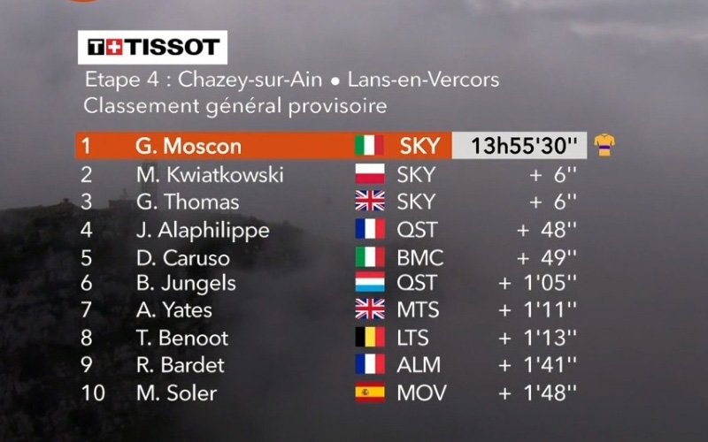 #Dauphiné. Clasificaciones 4ª Etapa y General