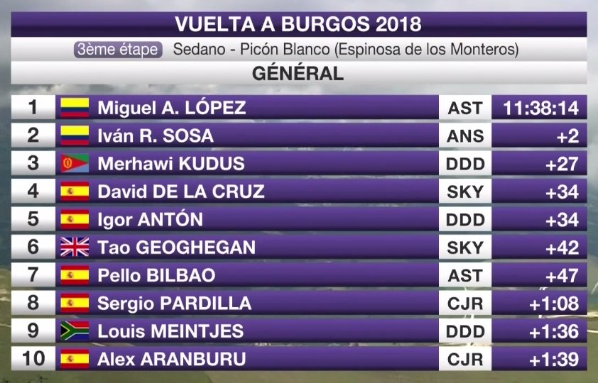 ¡Victoria de Miguel Ángel López! El de Astana se impone a Ivan Sosa...#Colombia brilla...David de la Cruz a 32 seg..cuarto,Kudus...quinto m/t Igor Anton..