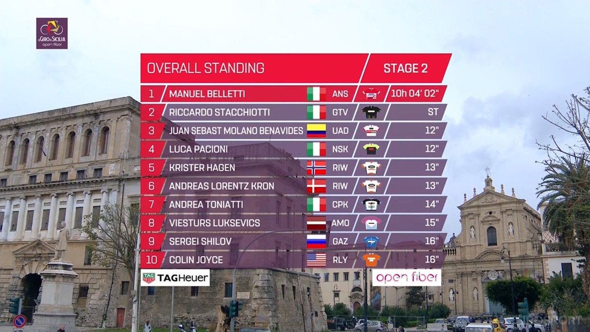@Diego_9604 (@KometaCTeam), Luksevics (AMO), Kron (RIW), Di Sante (SAN) y Toniatti (CPK) tiene 2:15 de ventaja sobre un pelotón comandado por el equipo @AndroniGiocatto