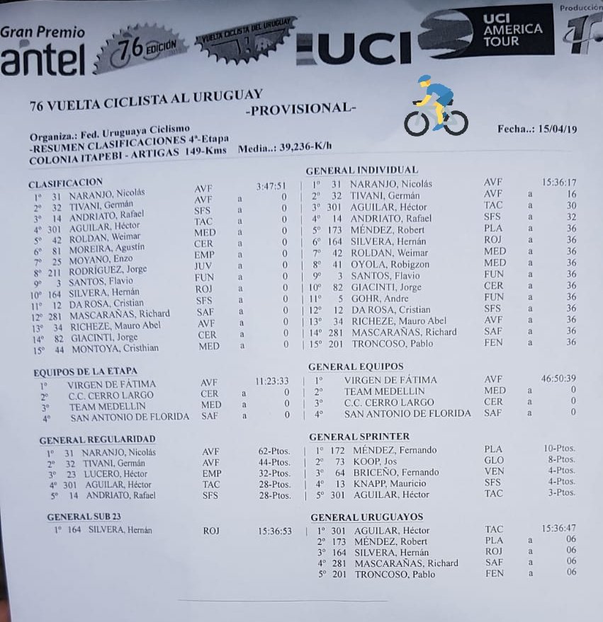 Nicolas Naranjo vuelve a ser el vencedor de la etapa...esta en Artigas...