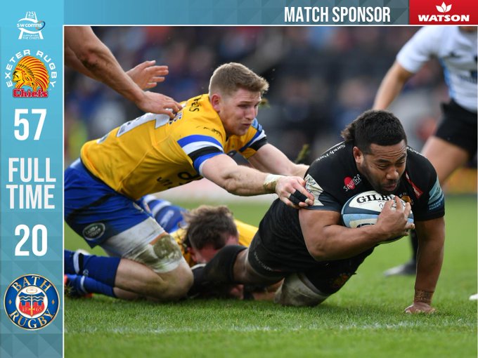 ST*En 5 minutos..36 a 3..Exeter espera..Bath ataca con Beno Obano..están cerca del ingoal...lo dejan cansar,así parece...Mike Williams y otra puntada...off-side claro...Beno Obano y otra puntada..intento de Zach Mercer..no pasa...Luke Pearce cobra el penal..Bath la juega rápida,try de Zach Mercer, no lo convierte Priestland...
