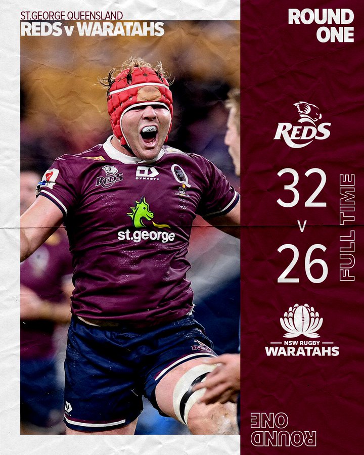 Amaga James Ramm...corre recto...gran tackle de Hunter Paisami,...al piso..retienen...#Reds tiene falta a favor..van al touch,lo lanza Brandon Paenga-Amosa..la baja Blyth.. ...hay ruck...termina en try de Taniela Tupou,pedido de TMO...no lo cobran,pero dan scrum Rojo...introduce Tate McDermott en las 22 Celestes...buen empuje local,penal cobrado por Berry,piden un nuevo scrum...juegan..Angus Bell va para arriba..otro penal..Berry habla,dice basta..Tate McDermott introduce..se veia venir..Si...Sin Bin para el pilar visitante-Angus Bell- duerme #WAR,la juega rápida Tate McDermott...su try..suma Bryce Hegarty..19 a 7.